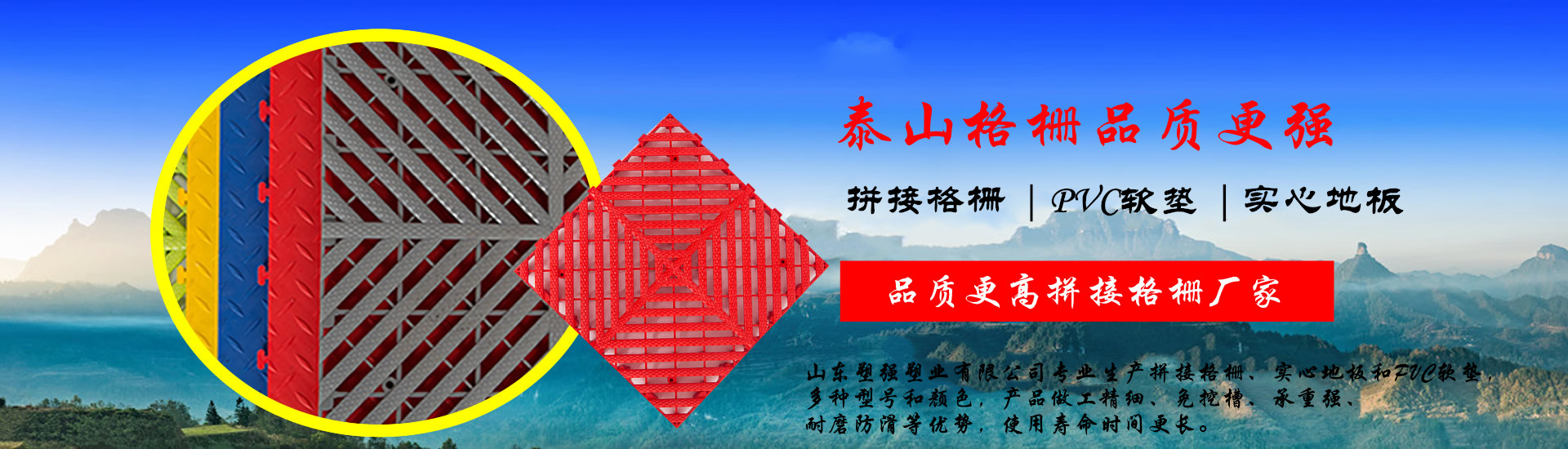 泰山塑強塑業在拼接格柵行業里,具備了多年的生產經驗,先進的技術,雄厚的生產實力。在產品層次來說我們采用了進口的色母為產品著色,聚丙烯全新材料為原材料為生產原料。一個企業的經驗來源與對于市場多年的摸索,對于產品的嚴于律己,質量的把握。
